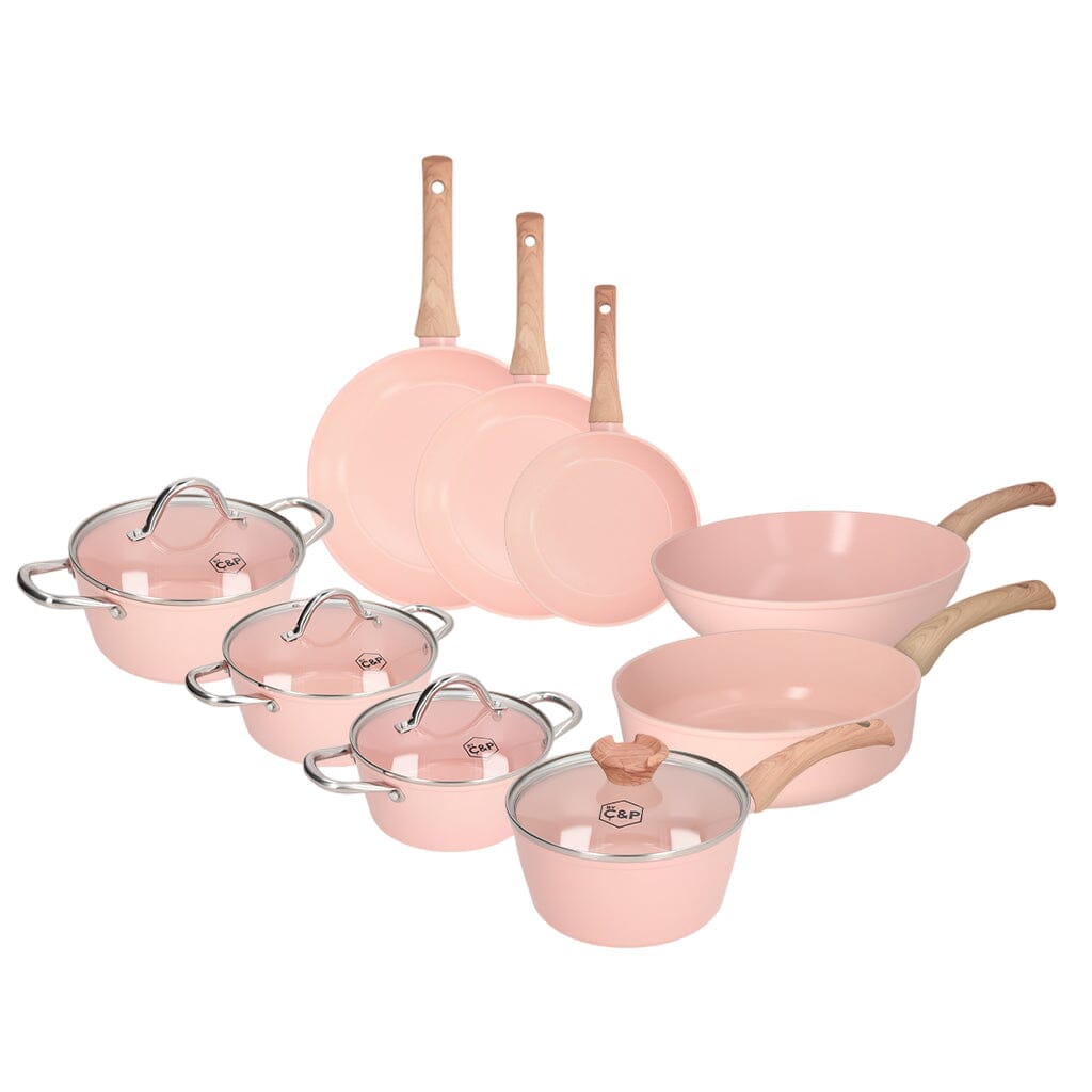 Notre batterie de cuisine rose poudré est un atout précieux pour votre cuisine. Son revêtement antiadhésif est facile à nettoyer , elle passe au four jusqu'à 180 °C (356 °F) et au lave-vaisselle, même jusqu'à 280 °C (526 °F). De plus, elle conduit la chaleur rapidement, ce qui permet d'économiser jusqu'à 30 % d'énergie et de temps !