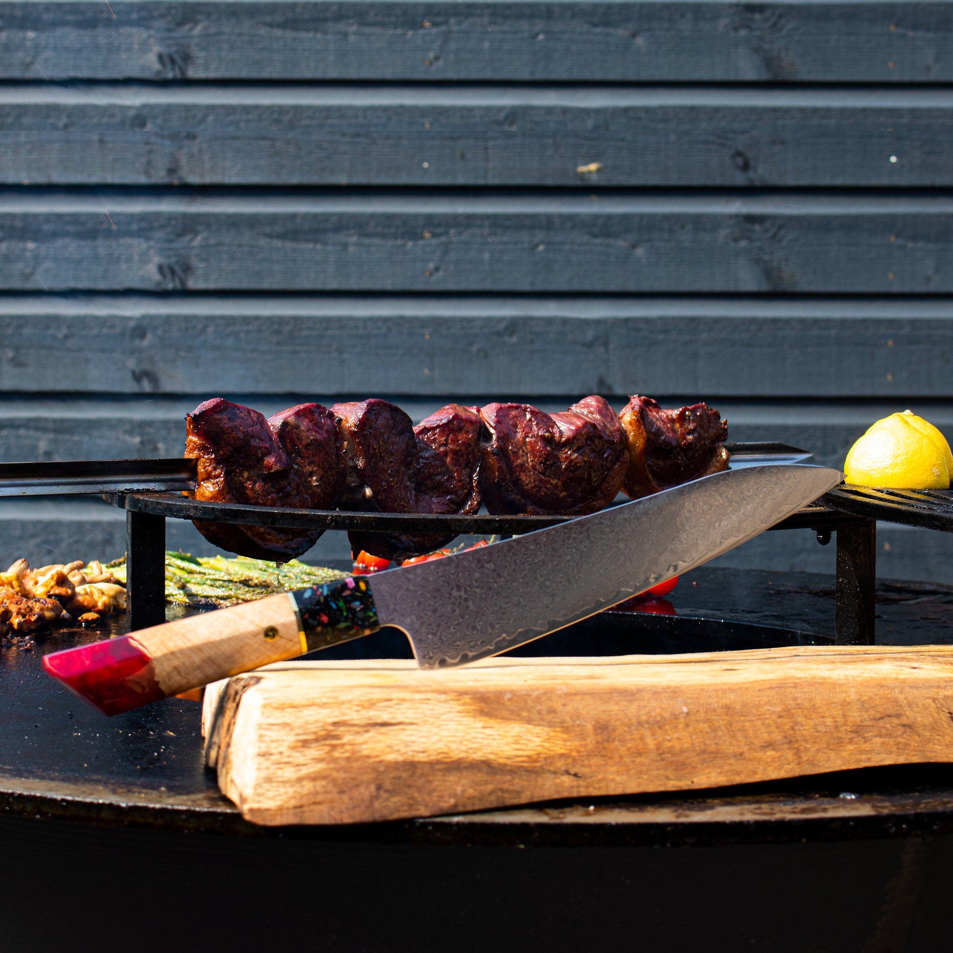 L' édition spéciale - Couteau de chef Ruby Epoxy Jewels de Shinrai Japon est un bel accroche-regard pour votre bloc à couteaux. Ce couteau populaire est non seulement beau à regarder, mais peut également être utilisé pour toutes les tâches de coupe. Aucune tâche de découpe n'est impossible avec ce magnifique couteau de chef japonais. Cet appareil polyvalent convient pour couper de la viande, du poisson, des légumes, des fruits et des herbes.