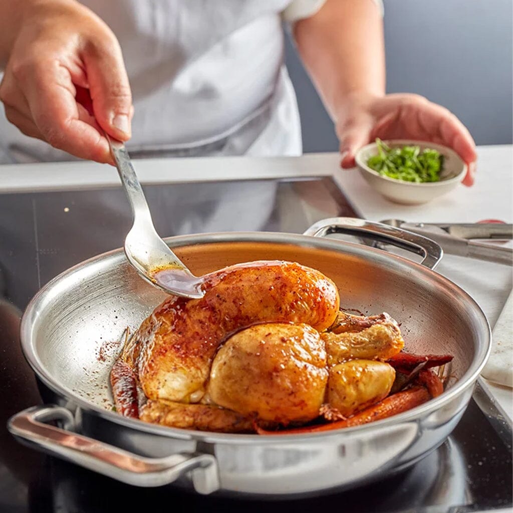 This is the perfect pan for browning a thick piece of meat first on the stove and then slowly cooking it in the oven. It's also ideal for a fish gratin or tarte tatin, for example.