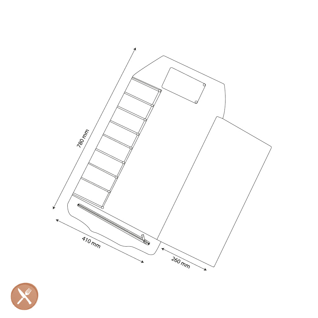 • Space & Layout: Suitable for 8 knives with a blade length of up to 22 cm, kitchen scissors and an extra zippered pocket for accessories